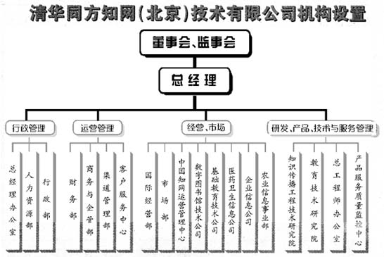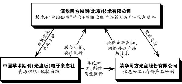 同方知网技术产业集团以同方知网(北京)技术有限公司为产业核心组成,集团成员包括中国学术期刊(光盘版)电子杂志社和清华同方光盘股份有限公司,简称“两司一社”。同方知网(北京)技术有限公司,主要职责与功能是以技术先导面向市场,负责技术研发、网络出版发行与信息服务平台的建设和运营,以及产品推广与技术服务;中国学术期刊(光盘版)电子杂志社负责知识资源的组织、资源产品的整合研制与出版;清华同方光盘股份有限公司负责资源的信息加工与制作。