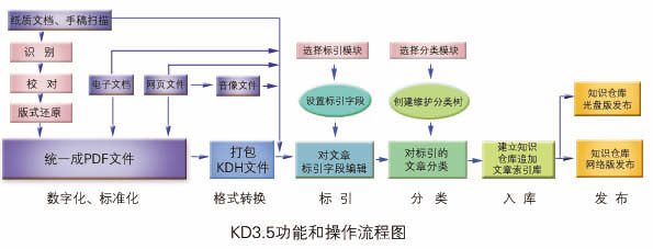 1、文档数字化、数据标准化处理模块:文档指纸介质、电子文本和多媒体三种信息形态的资料。KD3.5提供两种标准化和非标准化处理方式。