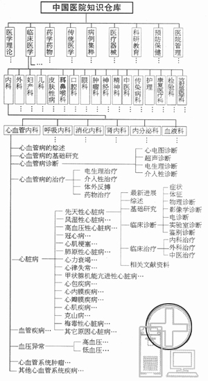 1)临床诊疗 突出临床诊疗过程的各主要环节,如:诊断 、治疗、用药、并发症分析治疗、护理、康复治疗等,针对性地为临床医务人员提供知识信息服务;提供相关的信息资料和研究资料,如:某类疾病的综述、科研进展、基础性研究结果、病例讨论和相关医疗器械产品信息等,以便于临床医务人员扩展知识、应用最新科研成果和技术手段对患者进行诊断治疗,并有利于开展科研活动和著书立说。