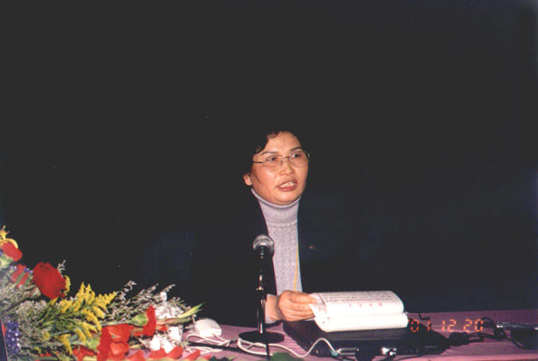 南开大学图书馆信息部主任何翠华女士在"'2001信息服务与知识服务发展学术研讨会暨第六届CNKI工程信息服务机构年会"上发言。