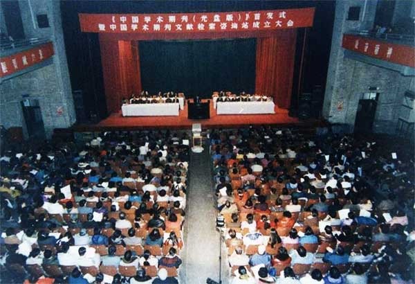 《中国学术期刊(光盘版)》首发式暨中国学术期刊文献检索咨询站成立大会在清华大学隆重举行。图片 |