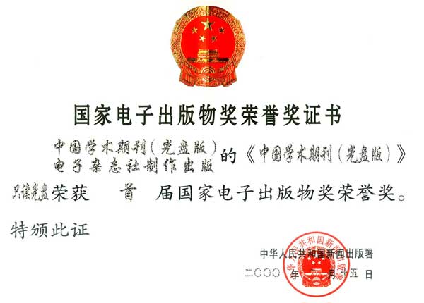 国家新闻出版署组织首届国家电子出版物评奖,CAJ-CD被评为该奖的最高奖项--国家电子出版物荣誉奖,名列榜首。图片 |